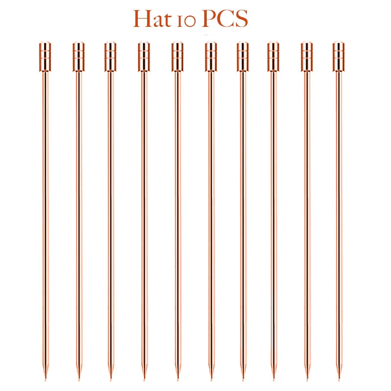 10PCS Cocktail Pick Cocktail Stick Stainless Steel Fruit Sticks Drink Stirring Sticks Martini Picks- Circle/Ball/Hat Shape