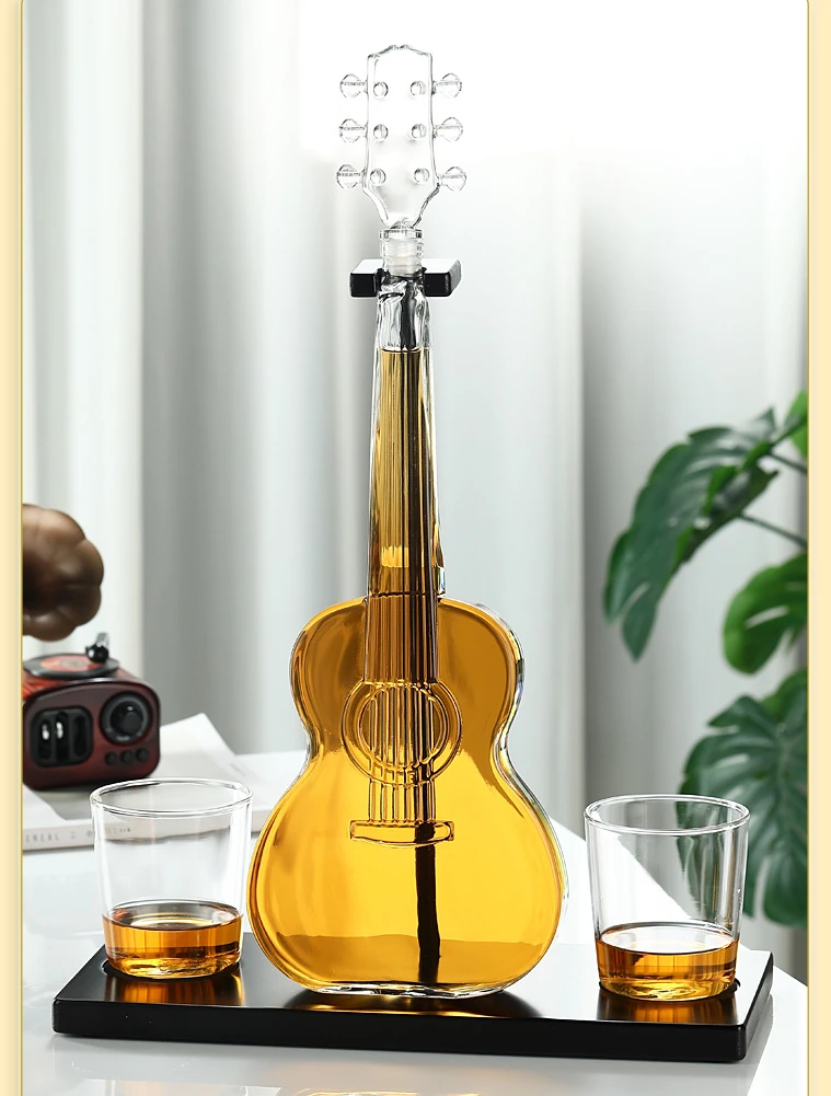 High Borosilicate Glass Wine Bottle Guitar Violin Decanter Wine Set Thickened Transparent Craft Decanter Bottle Decoration