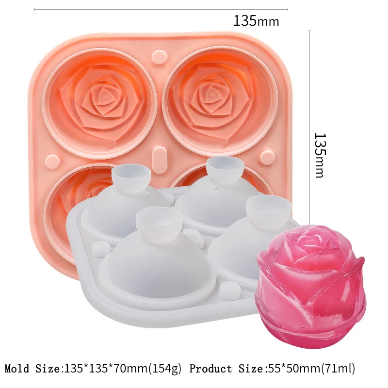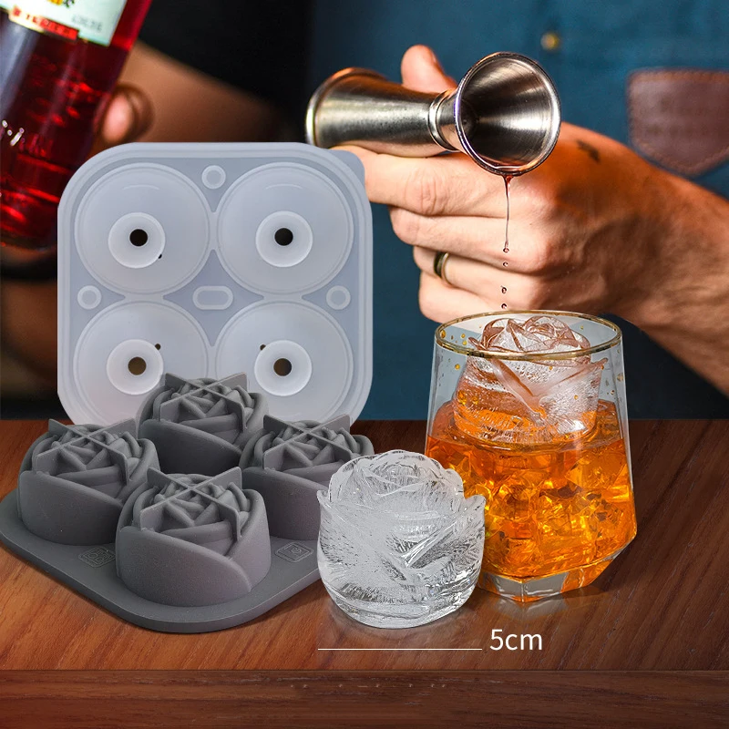 3D Silicone Diamond Skull Ice Mold Tray Stackable Silicone Ice Cube Molds for Whiskey Cocktails Beverages Iced Tea Bloom Rose