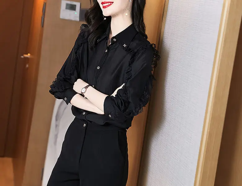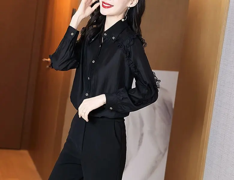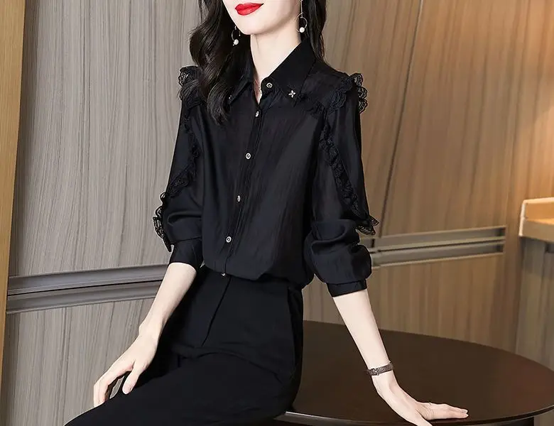Women's Lace Patchwork Elegant Button Up Bartender Shirt